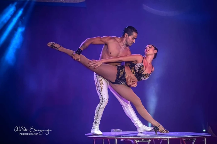 En exclusivité, découvrez l’incroyable duo Matteo & Lusesita..... venu tout droit du mythique Cirque d’Hiver Bouglione de Paris. Ils présenteront un numéro exceptionnel de perche aérienne, ainsi qu’une performance spectaculaire mêlant acrobaties aériennes et feu, une première absolue.